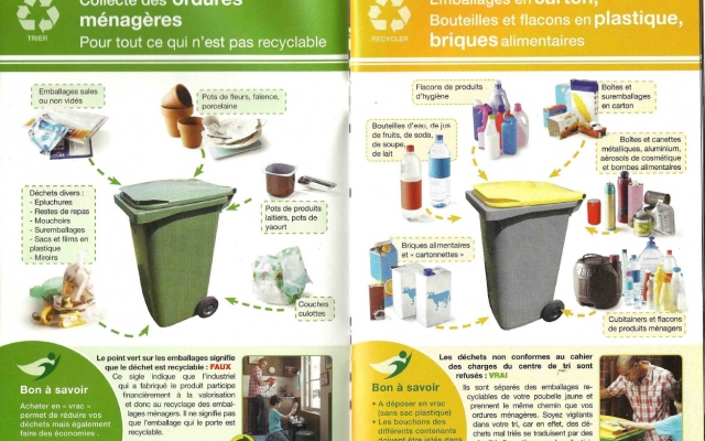 Dans le cadre du « Tri Sélectif » sur notre commune, le ramassage des Verres (conteneurs verts) et des Emballages Ménagers Recyclables (conteneurs bleus) a lieu en alternance une semaine sur deux le mercredi matin avec les ordures ménagères. (Calendrier des passages disponible ci-dessous).